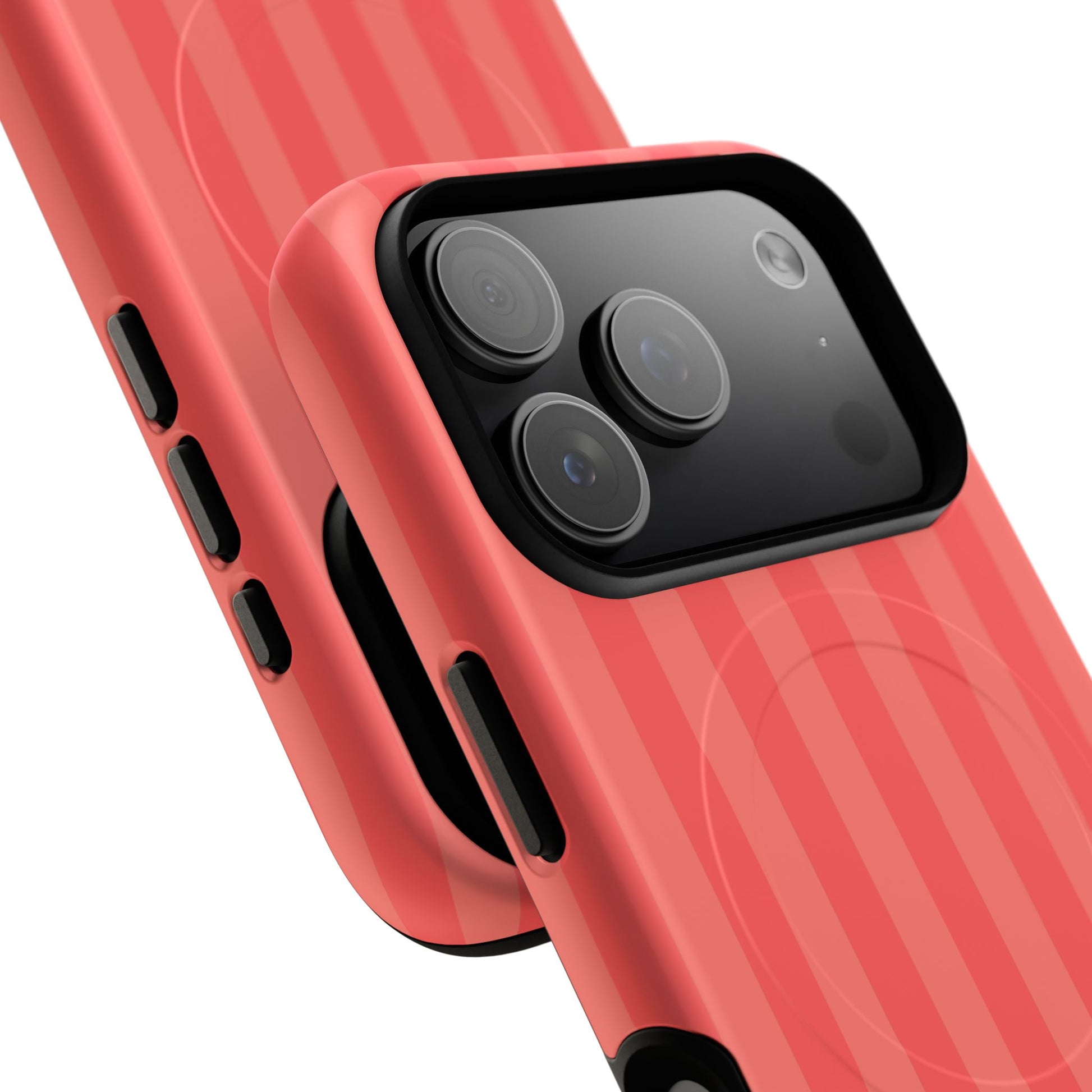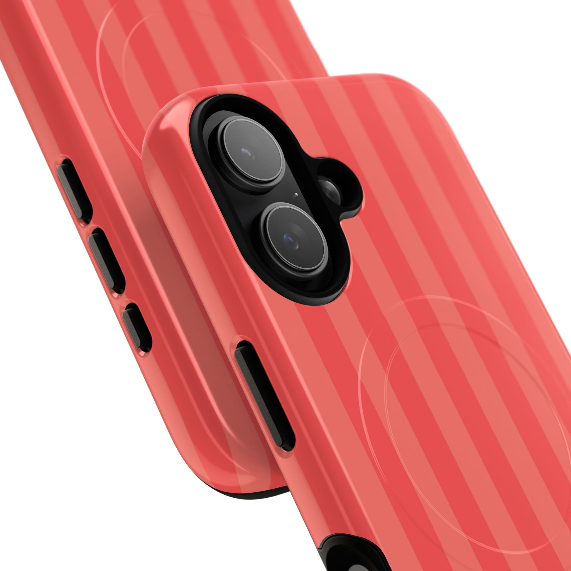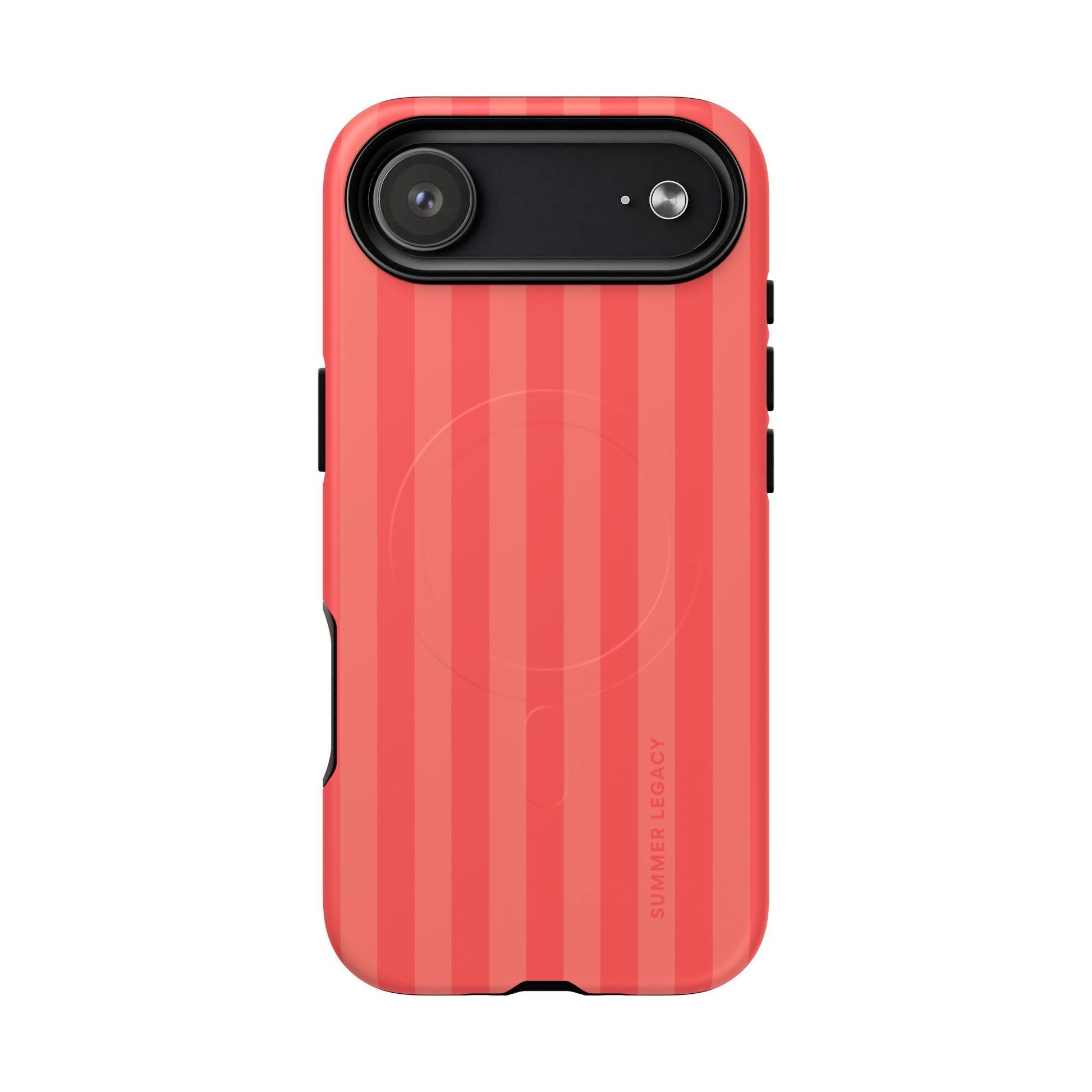 Capture Mediterranean summer vibes with these warm coral MagSafe-ready stripes. Engineered for a flawless magnetic "click," this monochromatic case ensures your device stays powered during travel adventures. A seasonal must-have to match your phone case to your outfit.