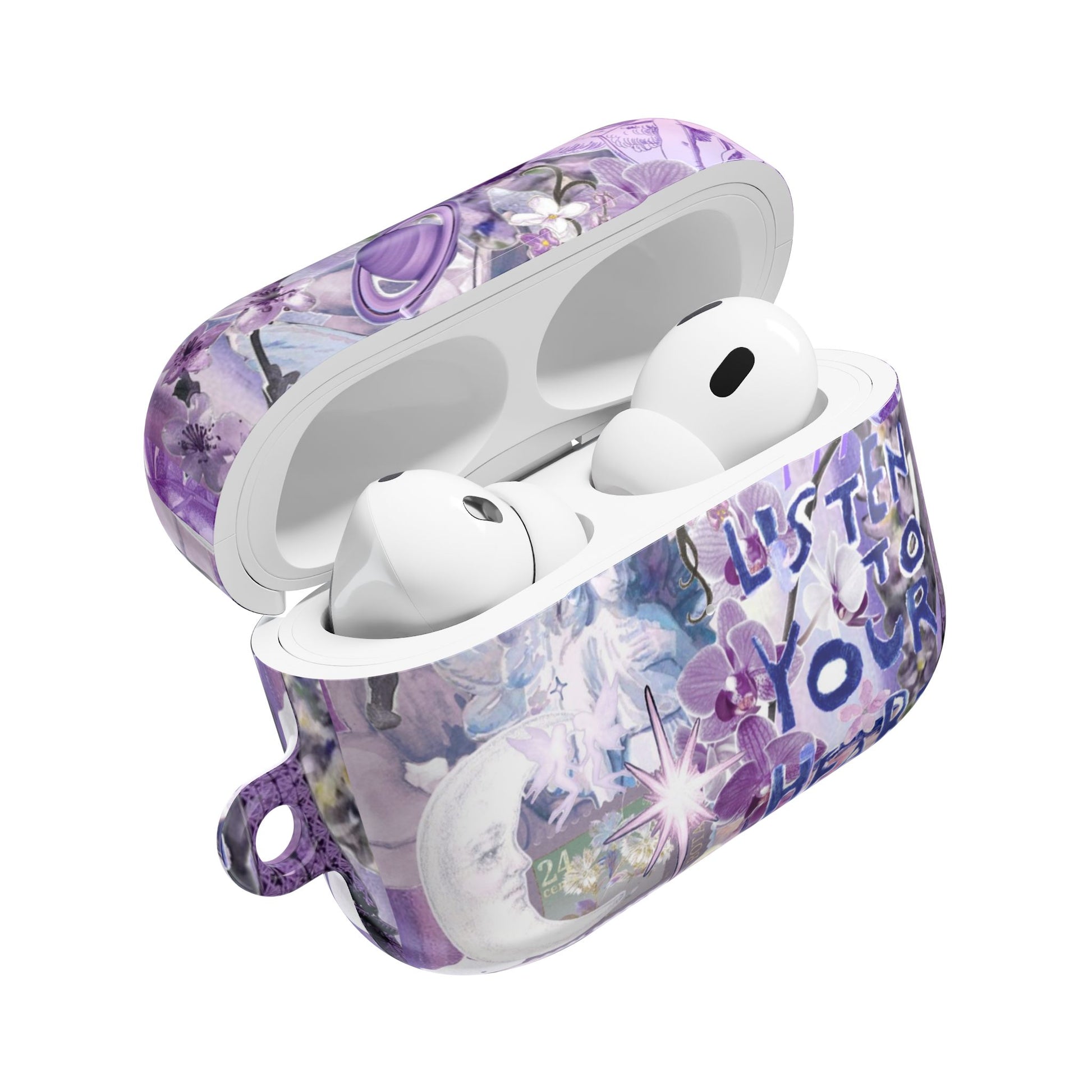 Wrap your soundtrack in enchantment with the "Reverie Purple" AirPods case. These celestial lilac tones and heart motifs act as a visual harmony for your earbuds, turning every playlist into a soulful, immersive experience.