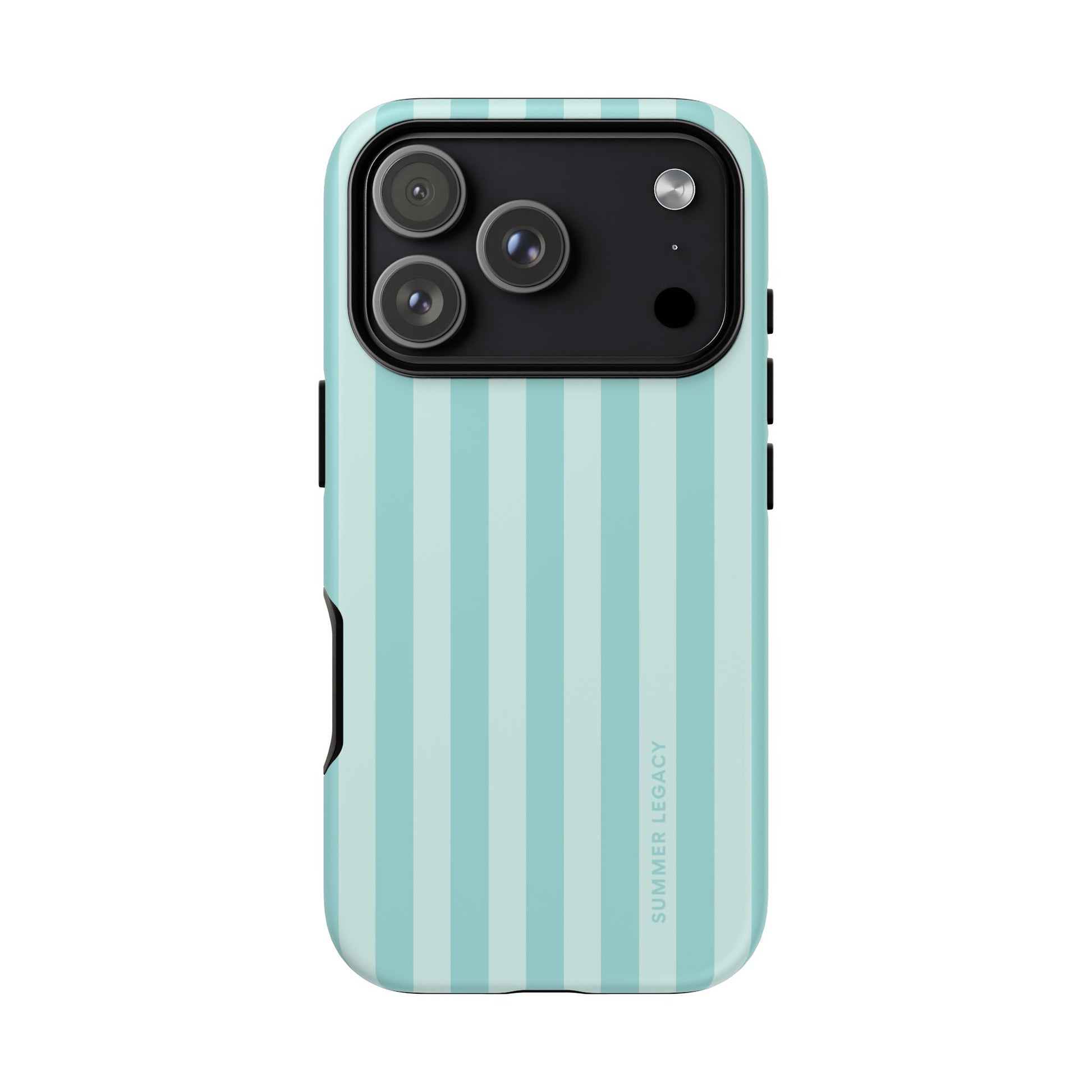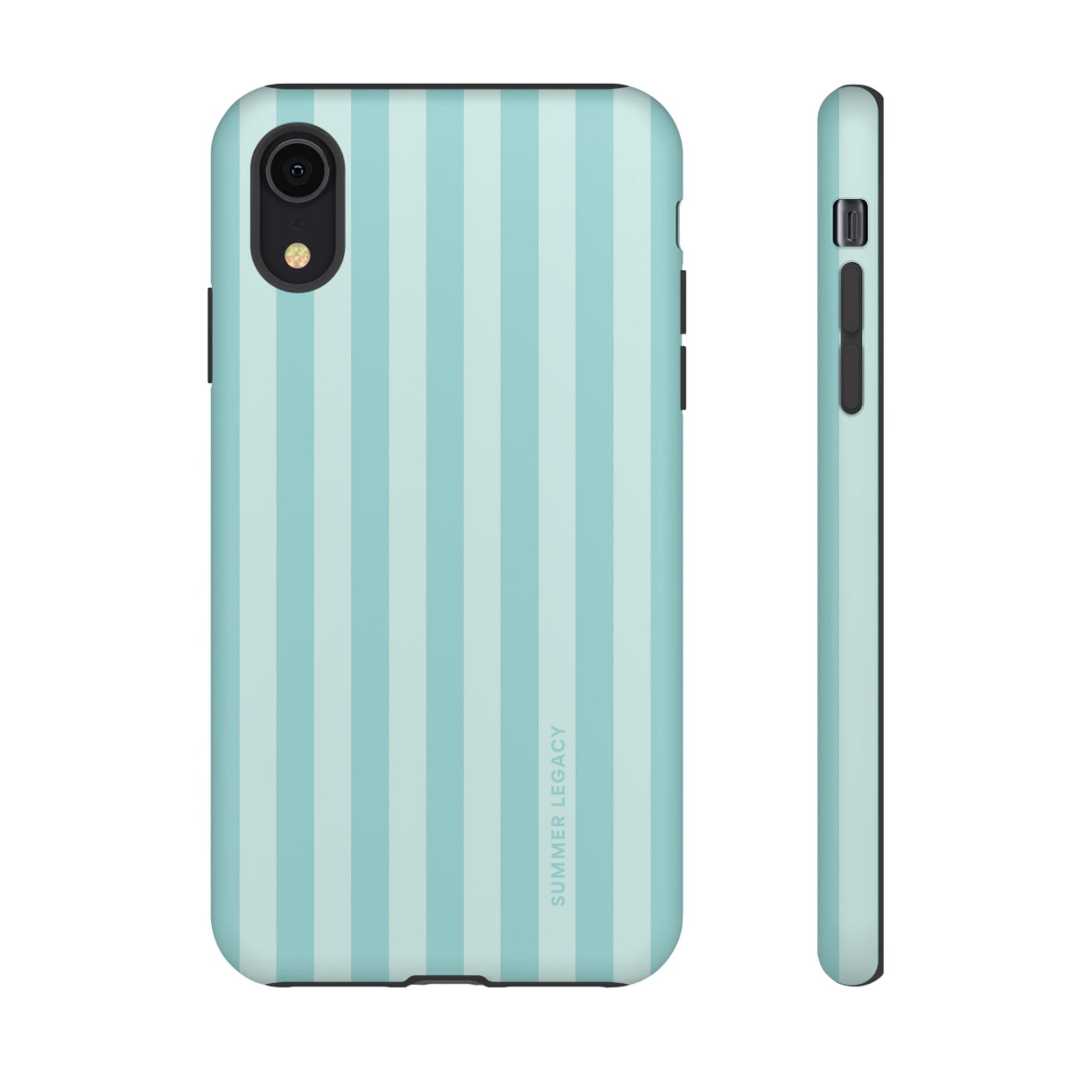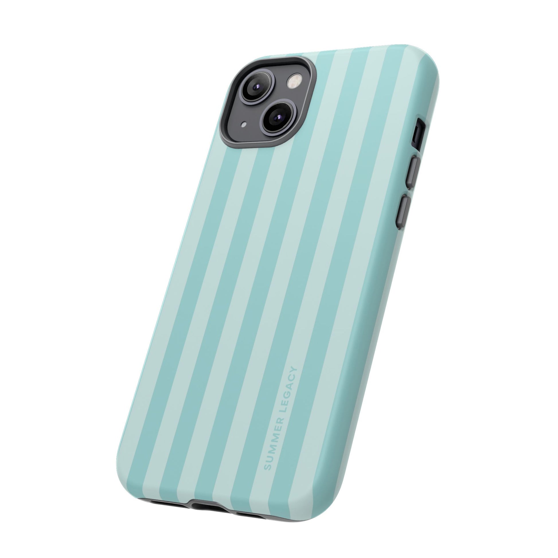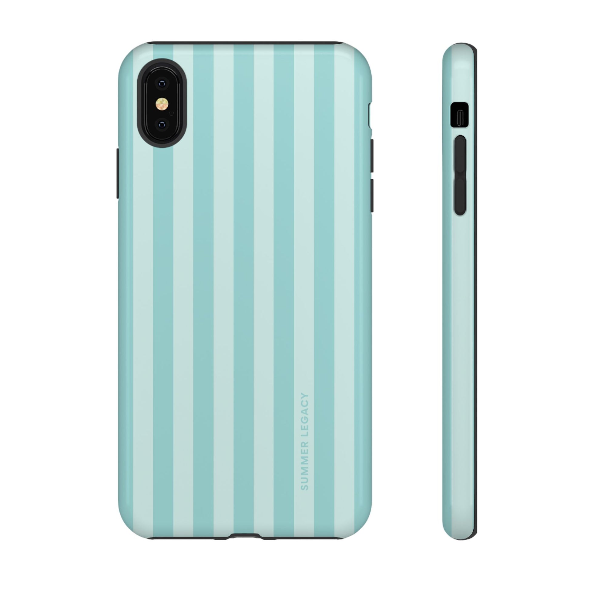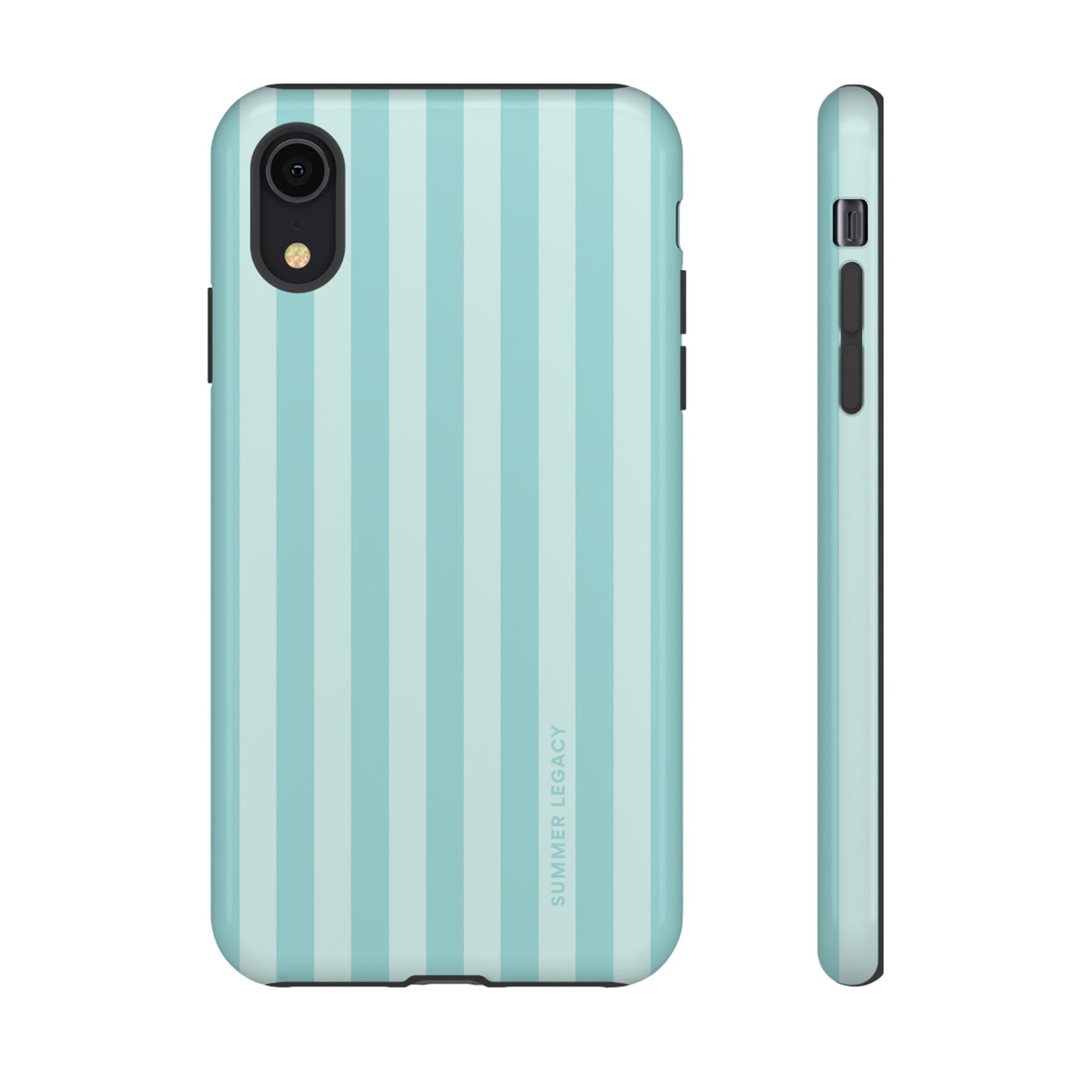 Classic, nautical-inspired chic. These bold teal and mint stripes bring a sense of structured style to your accessory rotation. Whether you're city hopping in Europe or grabbing an iced latte, this case is the ultimate wardrobe staple for a coordinated, polished look.